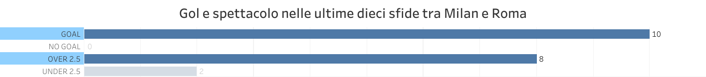 Tuttavia, attenzione ai precedenti: nelle ultime dieci sfide di Serie A tra Milan e Roma si sono sempre visti gol da entrambe le parti, con Over 2.5 verificato 8 volte su 10 e Goal in tutte e dieci le occasioni.