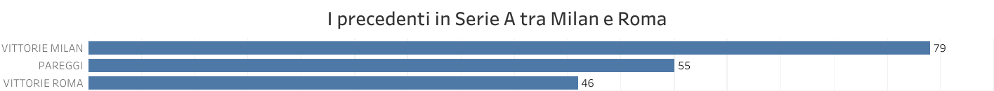 Precedenti favorevoli al Milan, che ha vinto 85 delle 202 sfide totali contro la Roma (63 pareggi e 54 sconfitte). Prendendo in esame la sola Serie A si contano 79 vittorie del Milan, 46 della Roma e 55 pareggi. A San Siro Milan in netto vantaggio con 49 vittorie a fronte di 19 dei giallorossi.