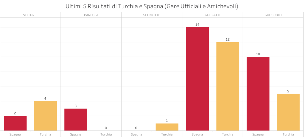 La Turchia arriva a questa sfida forte di 4 vittorie nelle ultime 5 partite disputate tra gare ufficiali e amichevoli, con l’unica sconfitta maturata contro il Messico. La Spagna, invece, ha collezionato 2 vittorie e 3 pareggi nelle ultime cinque uscite, includendo due partite terminate poi ai rigori — tra cui la finale di Nations League persa contro il Portogallo.
